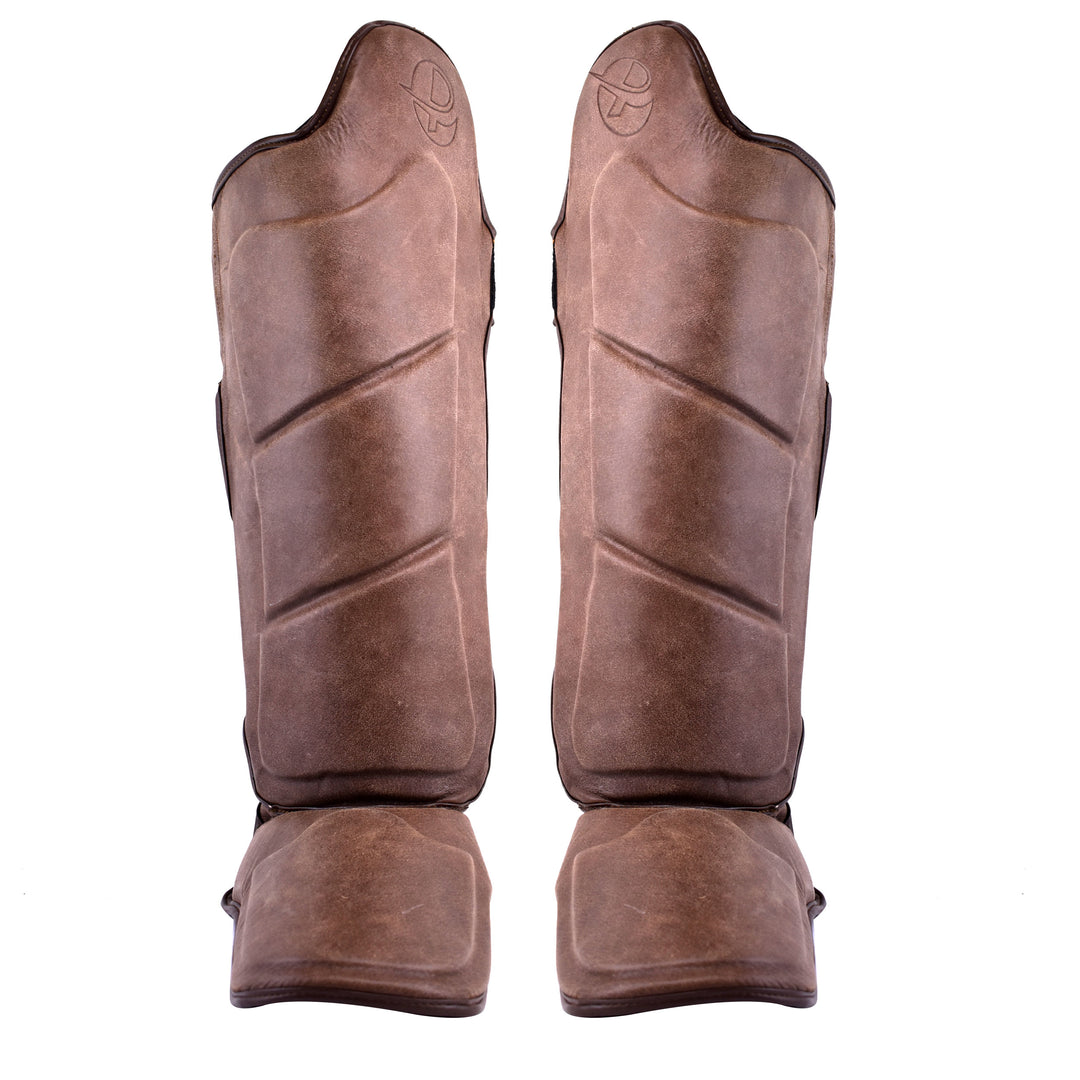 PFG Brown Vintage Genuine Leather Shin Instep - Boxing MMA Muay Thai Protection & Training